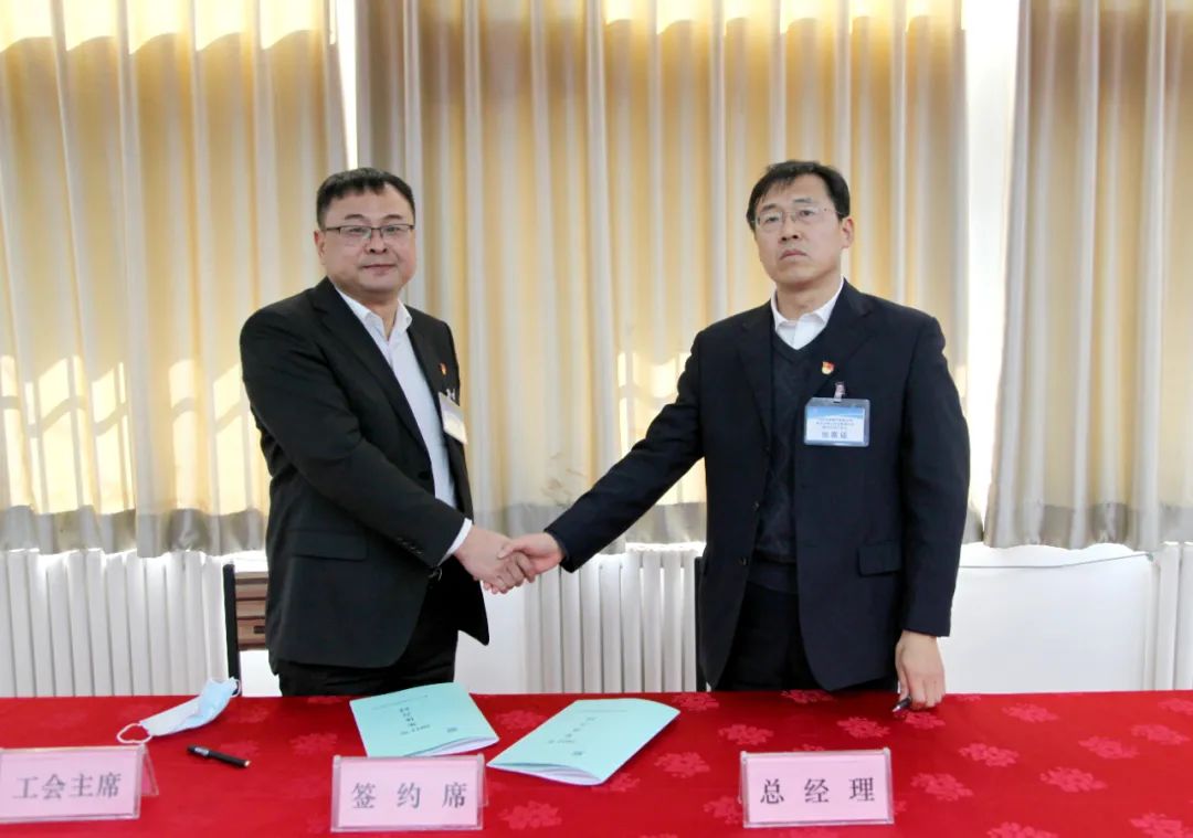 總經(jīng)理郭有勁、工會主席劉紅光分別代表公司行政、工會簽訂了《2022年集體合同》。郭有勁代表公司行政與各生產(chǎn)所負責(zé)人簽訂了《2022年生產(chǎn)經(jīng)營目標責(zé)任書》《安全質(zhì)量環(huán)保目標管理責(zé)任書》。